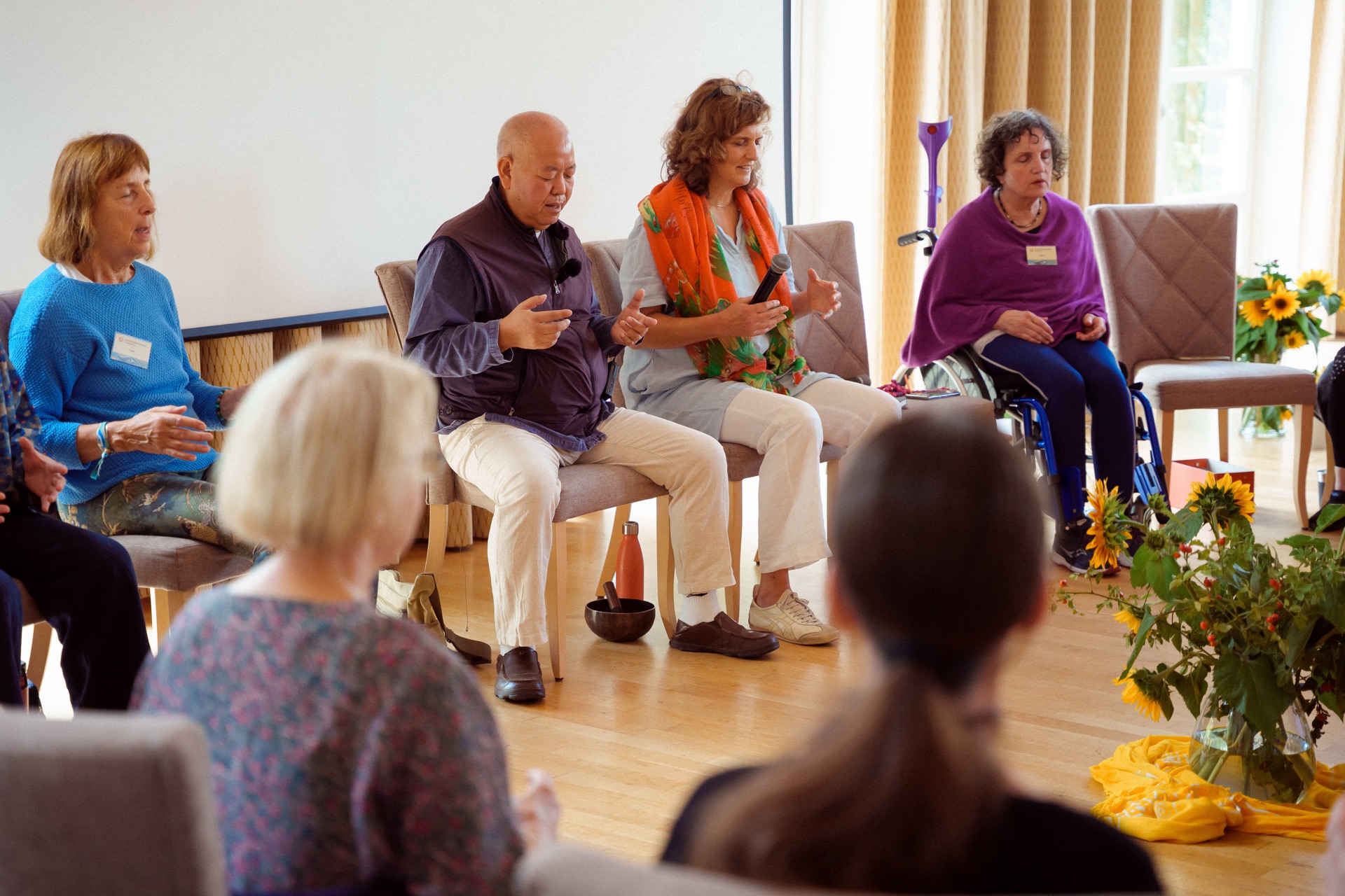 Anders als beim letzten Treffen, wurden diesmal bereits beim ersten Zusammenkommen am Donnerstag Abend Kleingruppen (Bezugsgruppen) gebildet, die sich im Laufe der darauffolgenden Tage immer wieder trafen und ihre Erfahrungen austauschten. In den meisten Fällen klappte das sehr gut und brachte Menschen einander näher, die sonst eher nicht miteinander ins Gespräch gekommen wären. Erstmals unter den Teilnehmern waren erfreulicherweise auch 13 Zhineng Qigong Praktizierende aus Polen.