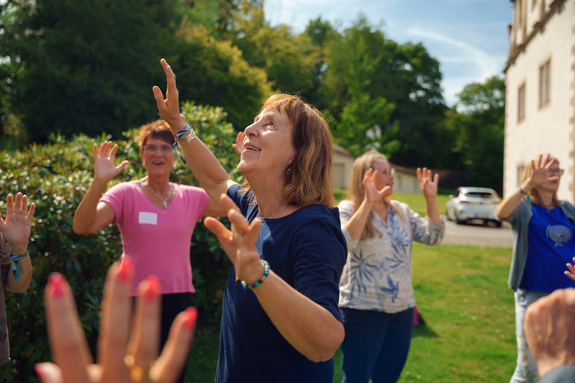 Drei Tage verwandelte sich das beschauliche Schloss mit seinem wunderbaren Vorhof, seiner schönen, großen Halle und seinem weitläufigen Gelände wieder einmal in einen lebendigen Ort des stillen Erspürens, des Austausches, des gemeinsamen Praktizierens, Singens und Klängen Nachlauschens und des Feierns.